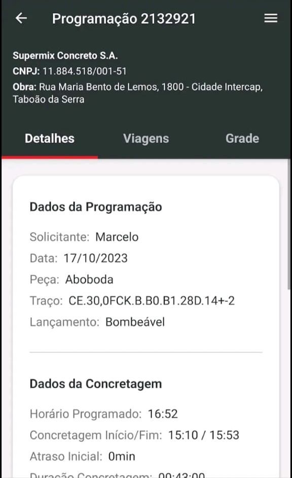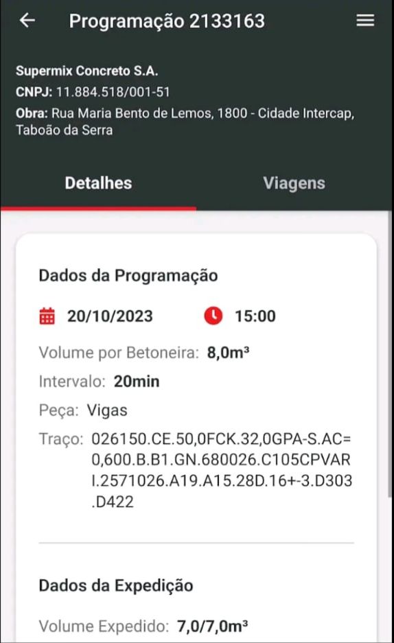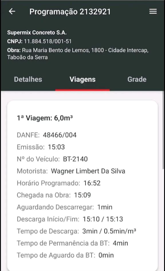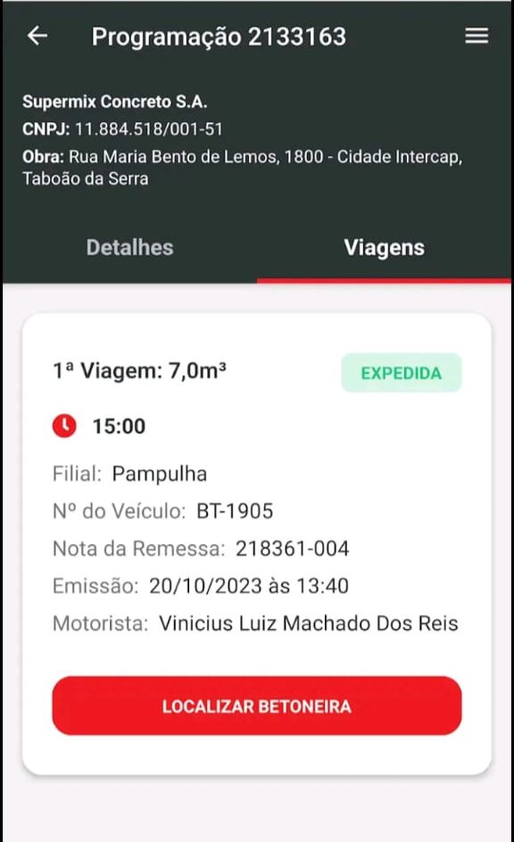 - Receber alertas quando uma NF tiver sido emitida, indicando que, em breve, uma betoneira chegará à sua obra.